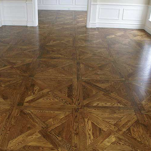 French Panels are manufactured In Europe from premium European Natural Oak. Every panel is precision-milled and individually assembled to create a long-lasting, visually stunning floor. French Panels are available in a few designs of pattern and sizes Marie Antoinette and Versailles patterns are available in three different sizes. Chantilly and Florentine pattern have their own one option of size. All French Panels are produced in 19mm thickness of solid European Oak.